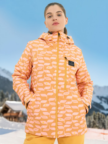 ДостоинстваНеобычный принт, сочетание розового и охры поднимает настроение. Есть юбка - защита от ветра и снега, качественное исполнение.