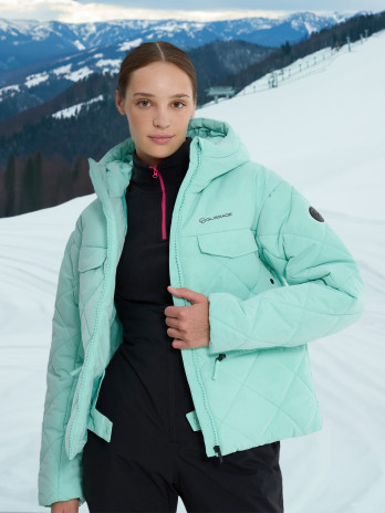 ДостоинстваМятный цвет, приталенная, отличная посадка, стройнит, теплая, лёгкая, современные технологии: защищает от ветра и дождя, не пропускает снег, влагу - капли воды остаются на поверхности, качественный пошив.