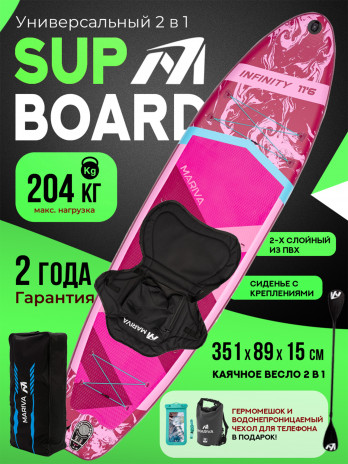 КомментарийЗамечательная доска, одни положительные эмоции! К покупке, однозначно, рекомендую. Комплект богатый, всё как на фото. Одной мне нести её тяжеловато и накачать ручным насосом тяжело, благо есть электрические насосы).