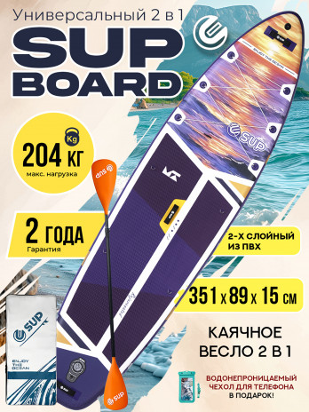 КомментарийДолго подбирала сап для новичка, подошёл по всем характеристикам: длина (не слишком длинный), ширина (более устойчивая), вес сапа, насос двойного действия (качается намного быстрее). Пришел полный комплект как в описании: сап и ремешок к нему, насос, весло, ремкомплект, лишь страховочный (полностью черный), гермомешок и ремешок к нему, чехол водонепроницаемый для телефона, 3 раздельных плавника, рюкзак (хороший, плотный). Цвета соответствуют фото, очень яркие и насыщенные. На спокойной воде кататься одно удовольствие, по волнам хорошая устойчивость.