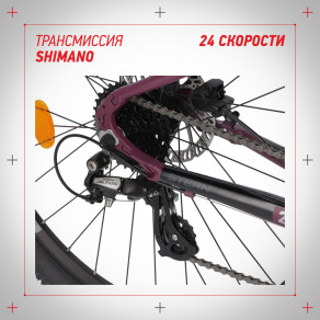 Трансмиссия Shimano обеспечит точное переключение 24 скоростей.