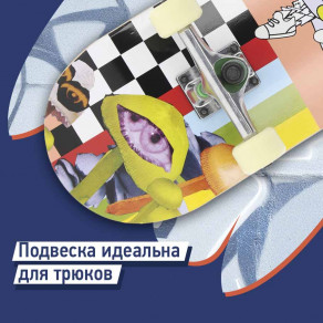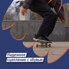 Крупнозернистая шкурка отвечает за надежное сцепление с декой. Ноги не будут скользить по доске — сможешь уверенно выполнять трюки.