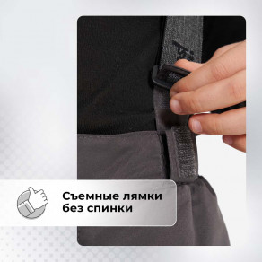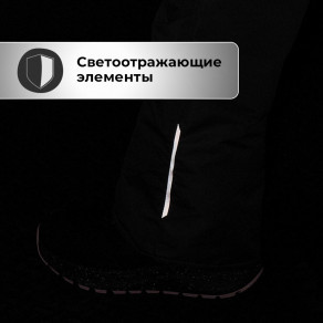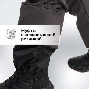 Муфты с нескользящей резинкой, расположенные по низу штанин, не дадут снегу и холодному воздуху попасть под одежду.
