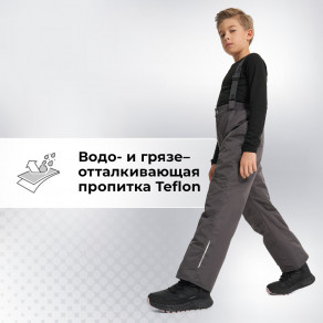 Мембрана с показателем водонепроницаемости 5000 мм и паропроницаемости 5000 г/м2/24 ч не только защитит от промокания, но и поможет избежать перегрева. Дополнительная водо- и грязеотталкивающая пропитка Teflon усиливает водонепроницаемость, а также делает уход за одеждой проще. Верхний материал можно легко очистить с помощью влажной салфетки.