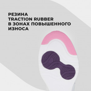 Резина TRACTION RUBBER, расположенная в зонах повышенного износа на кончиках пальцев, под плюснами и в пяточной зоне, отвечает за надежное сцепление с любой поверхностью.