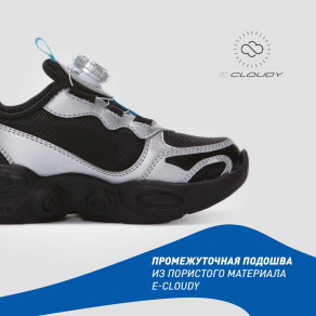 Промежуточная подошва из пористого материала E-CLOUDY компенсирует ударные нагрузки, защищая суставы и позвоночник.