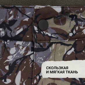 Скользящая и очень мягкая ткань не шуршит и не издает никаких звуков при соприкосновении с предметами — ветками, сухой травой, тростником и корой деревьев.