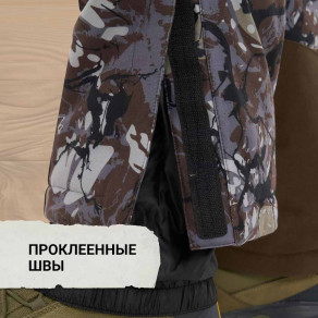 Мембрана с показателями 8000 мм/ 8000 г/м2/24 ч надежно защищает от влаги и ветра, а также обеспечивает комфорт при любой степени активности. Проклеенные швы обеспечивают дополнительную защиту от промокания.