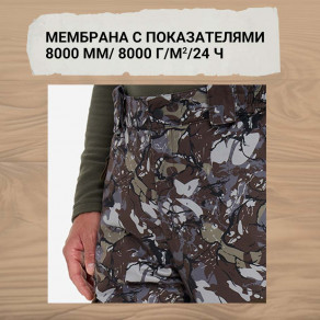 Утепленные непромокаемые брюки Geotech — идеальный вариант для ходовой охоты в период с осени по весну. Модель камуфляжной расцветки, выполненная из бесшумной ткани, поможет сократить дистанцию между человеком и природой.