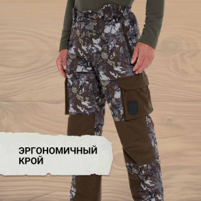 Эргономичный крой с артикуляцией в области коленей позволяет двигаться совершенно свободно, в том числе преодолевать препятствия, забираться на возвышенности или садиться на корточки.