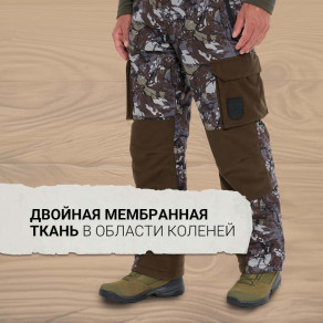 Брюки выполнены из прочного материала и имеют усиления из двойной мембранной ткани в области коленей.