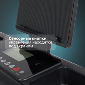 Под экраном находятся сенсорные кнопки управления, предназначенные для изменения скорости бега (плавно или пресетами) и выбора типа тренировки. Использование сенсоров повышает надежность системы управления.