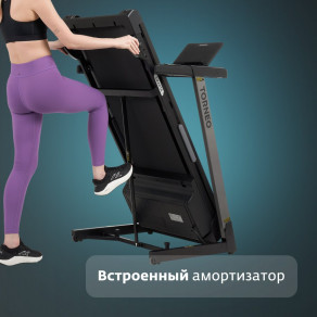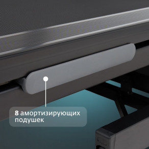 Под беговым полотном расположено 8 амортизирующих подушек: 6 усиленных круглых по периметру и 2 удлиненные по центру. Система амортизации активно поглощает ударные нагрузки.