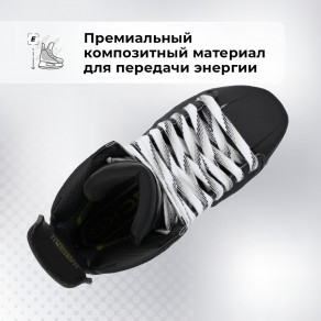 Лезвия Step Blacksteel (+4 мм) из стали высочайшего качества отвечают за феноменальное скольжение. Гибкий задник Flex Tendon 3.0 помогает увеличить шаг и быстрее набирать скорость.