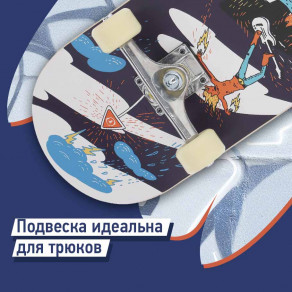 Крупнозернистая шкурка отвечает за надежное сцепление с декой. Ноги не будут скользить по доске — сможешь уверенно выполнять трюки.