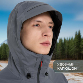 Хорошая ветрозащита: куртка плотно утягивается снизу, также регулируется капюшон.