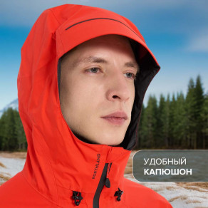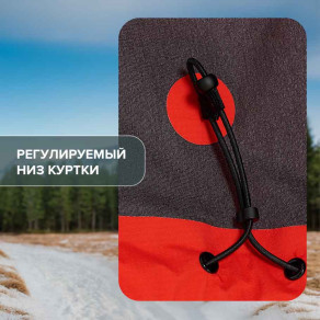 Хорошая ветрозащита: куртка плотно утягивается снизу, также регулируется капюшон.