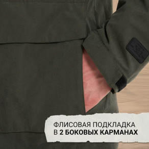 ДостоинстваЦентральная молния удачно защищена планкой ткани на липучках (не надо беспокоится о водостойкости молнии, о возможной поломке молнии в походе). В характеристиках написано, что нет водоотталкивающей пропитки, но на самом деле ткань немного отталкивает воду, см. фото рукава, сделанное в трамвае после мелкого дождя (беловатые точки - это не впитавшиеся капли воды, а редкие темные пятнышки - это впитавшиеся в ткань капли дождя). Есть один внутренний и один верхний карманы, куда влезает смартфон с запасом.