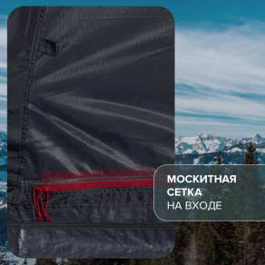 На входе предусмотрена москитная сетка. Можно спокойно проветривать палатку: насекомые не потревожат ваш отдых.