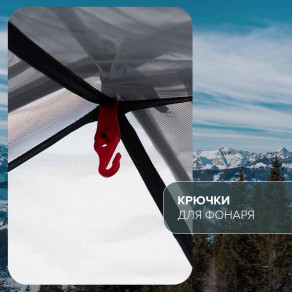 Во внутренней и внешней палатке есть множество карманов для аксессуаров и важных мелочей. В каждой комнате есть крючки для фонаря.