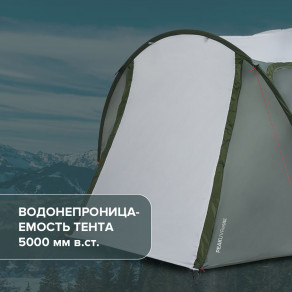 Тент с водонепроницаемостью 5000 мм в.ст. и проклеенными швами защитит от дождя.
