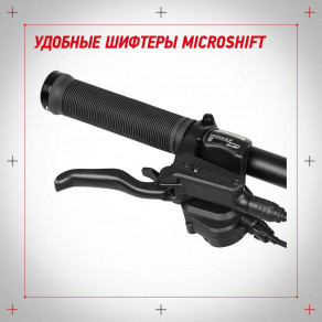 Трансмиссия Shimano Tourney и удобные шифтеры Shimano Altus обеспечат точное переключение 9 скоростей. Вы легко адаптируетесь к любым дорожным условиям: сможете подобрать режим для грунта, травы, песка и асфальта.