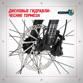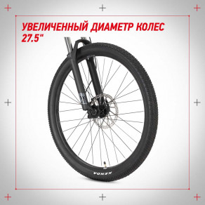 Колеса стандарта 27.5 дюйма обеспечат оптимальный накат — велосипед будет долго катиться сам после того, как вы перестанете крутить педали. К тому же колеса увеличенного диаметра более легко и плавно преодолевают препятствия.
