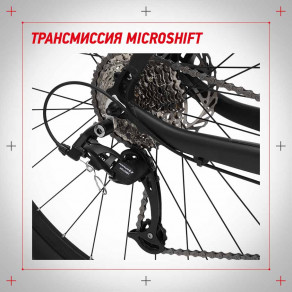 Трансмиссия и шифтеры Microshift для точного и плавного переключения 18 скоростей. Идеальный вариант, когда нужно буквально на ходу подбирать оптимальный режим езды.