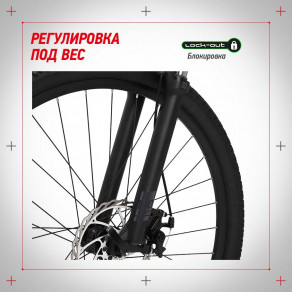 Пружинно-гидравлическую вилку с ходом 100 мм можно отрегулировать под вес райдера или заблокировать, если дорога ровная или идет в гору. Так вы будете тратить на езду меньше усилий.