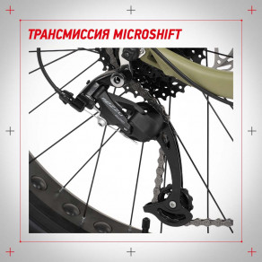 Трансмиссия Microshift обеспечит плавное переключение 8 скоростей. Вы сможете подобрать оптимальный режим для любой дороги.