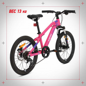 Горный велосипед Stern Action 20 предназначен для девочек 6–9 лет, которые уже имеют продвинутый уровень катания на велосипеде. Модель подходит как для прогулок по парку, так и для катания по пересеченной местности. Алюминиевая рама, дисковые тормоза, 20-дюймовые колеса, трансмиссия на 7 скоростей — все это обеспечивает комфорт и безопасность юного райдера. Велосипед прошел тестирование по международным стандартам качества ISO 4210 и GB 3565.