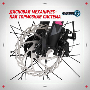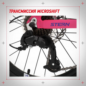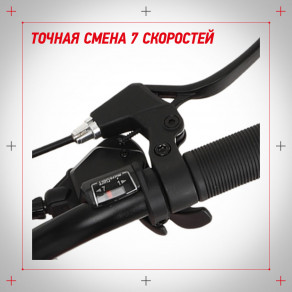 Трансмиссия и переключатели Microshift обеспечивают точную смену 7 скоростей. Можно выбрать оптимальный режим для спусков, подъемов, ровной и неровной дороги.