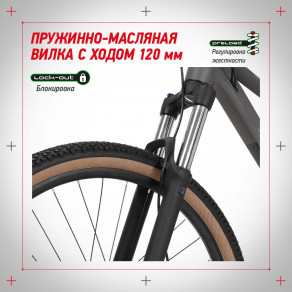 Пружинно-масляная вилка с ходом 120 мм, регулировкой жесткости Preload и блокировкой.