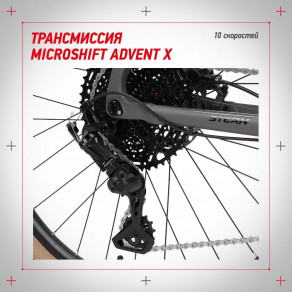 Трансмиссия Microshift Advent X обеспечивает точное переключение 10 скоростей.
