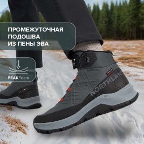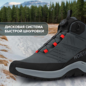 Ботинки обеспечивают тепло в морозы, имеют мягкую подошву и удобную шнуровку. Дизайн с красными акцентами выглядит стильно. Подходят для активного отдыха на свежем воздухе.