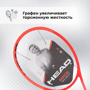 Универсальная ракетка Head из нового поколения Radical Team, предназначенная для профессионалов и продвинутых любителей, которые смогут насладиться ультрасовременным сочетанием контроля, вращения и мощности. Серия Radical, известная как "Народная ракетка", отличается смелым асимметричным дизайном. Модель стала легче, имеет большую площадь струнной поверхности и большую мощность, чем другие модели этой серии. Такие эксклюзивные технологии, как Sound Grommets, повышают мощность удара за счет большего перемещения струн, оптимизации звука и вибраций. Вам понравится эта ракетка, если вы любите застигать соперника врасплох разнообразными и неожиданными ударами. Применение графена в критических точках обода, геометрия обода Variable Beam и струнная формула 16/19 обеспечивают баланс контроля, вращения и мощности.