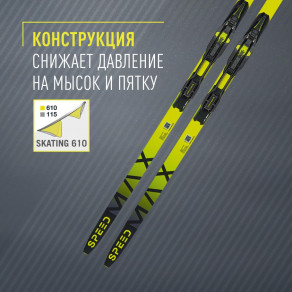 Конструкция Skating 610 снижает давление на мысок и пятку. Это гарантирует превосходную работу лыж на подготовленной трассе и мягком снегу.