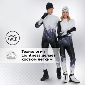 Технология Lightness помогает снизить вес модели. Костюм стал легче и при этом остался таким же теплым.