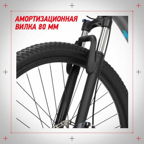 Амортизационная вилка 80 мм смягчит вибрации при поездках по неровным загородным тропам и сделает велопрогулки комфортнее.