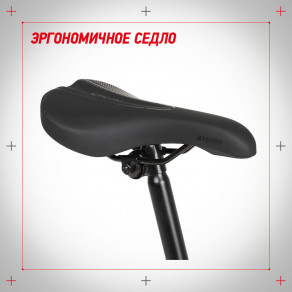 Удобное седло оптимизировано по форме, благодаря этому кататься будет удобнее. Оптимальная жесткость седла помогает передавать максимум энергии при кручении педалей.