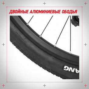 Надежная рама и двойные алюминиевые ободья выдерживают вес до 110 кг.