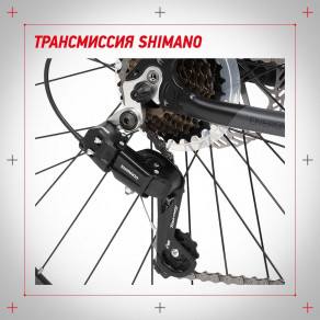 Трансмиссия Shimano обеспечивает точное переключение 21 скорости. Можно подобрать идеальный режим в зависимости от дорожного покрытия.