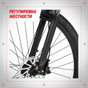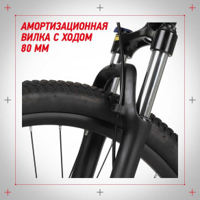 Амортизационная вилка с ходом 80 мм и регулировкой жесткости подходит для катания по в меру неровным загородным дорогам. Она эффективно смягчает вибрации. Чтобы не тратить силы при подъеме в гору или на ровной дороге, вилку можно заблокировать.