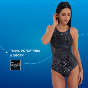 Купальник с аккуратными швами и ярким дизайном обеспечивает комфорт и поддерживает фигуру во время бассейновых тренировок.