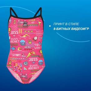 Принт, вдохновленный легендарными 8-битными видеоиграми и атмосферой бассейна, мотивирует на подвиги. Теперь ваша непоседа будет не просто плавать, а набирать очки и расти вместе с Joss.