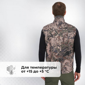 Подкладка выполнена из сетчатого флиса. Модель предназначена для охоты в межсезонье и подходит для температуры от +15 до +5 °С. Важно: восприятие температуры индивидуально и зависит от активности и погодных условий.