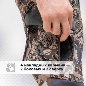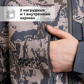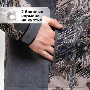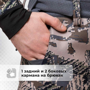 В костюме предусмотрено 12 карманов для всего, что вы хотите взять с собой: 5 на куртке, 7 на брюках.