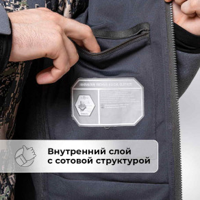 Внутренний слой с сотовой структурой и металлизированным напылением улучшает теплоизоляцию, а специальные вставки способствуют циркуляции воздуха.