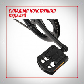 Складная конструкция рамы, руля и педалей.