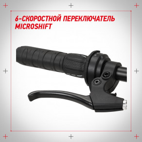 6-скоростной переключатель Microshift позволяет выбрать оптимальный режим катания.